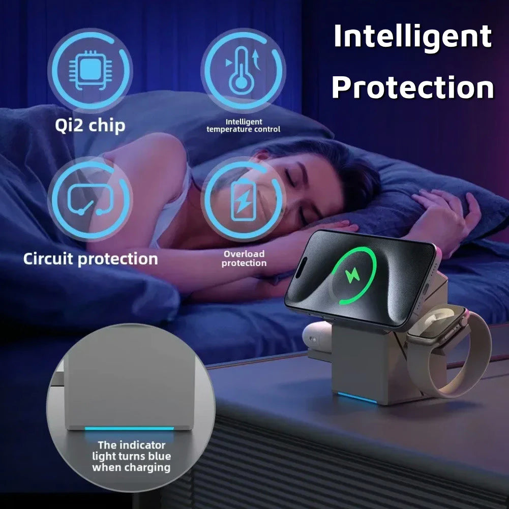 Compact and Portable Design for Home or Travel: Designed with an ultra-compact rectangular shape, this wireless charging station is lightweight and space-saving, making it perfect for home use, office, or travel.