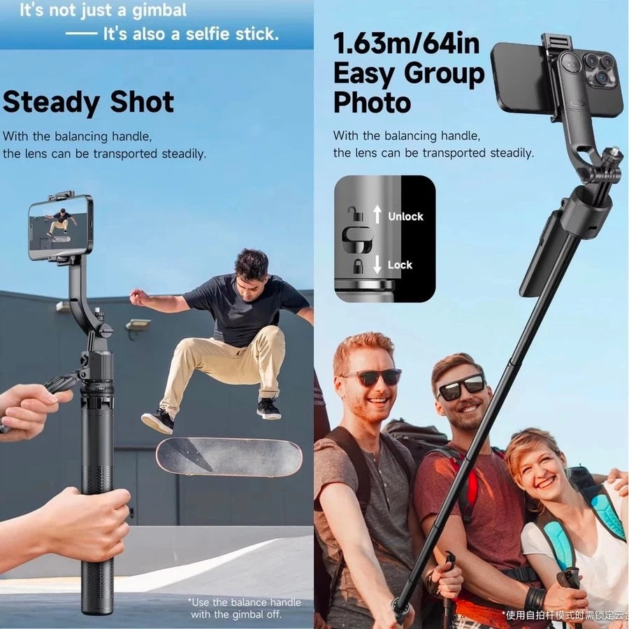 - AI Intelligent Face Tracking Shooting - 360°Face-Tracking tripod adopts smart Ai system technology to identify the face or body and 360° rotate steadily with your movement.